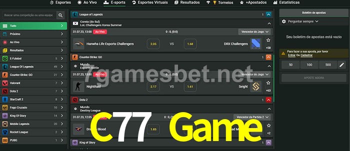 O C77 Game oferece uma grande seleção de opções de apostas em e-sports com probabilidades competitivas